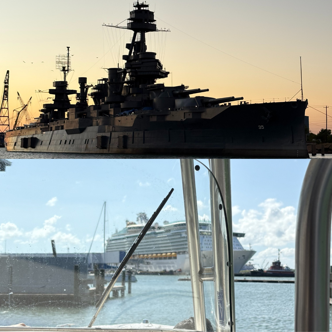 As the group began their journey, they passed a Royal Caribbean cruise ship boarding eager vacationers. As they motored back to port, they spotted the USS Texas docked for repairs—a striking reminder of the region’s deep maritime heritage and the enduring relationship between Texans and the sea. For Nyle and his team, the trip underscored what real conservation looks like in practice—real people, real ecosystems, and real economic stakes.