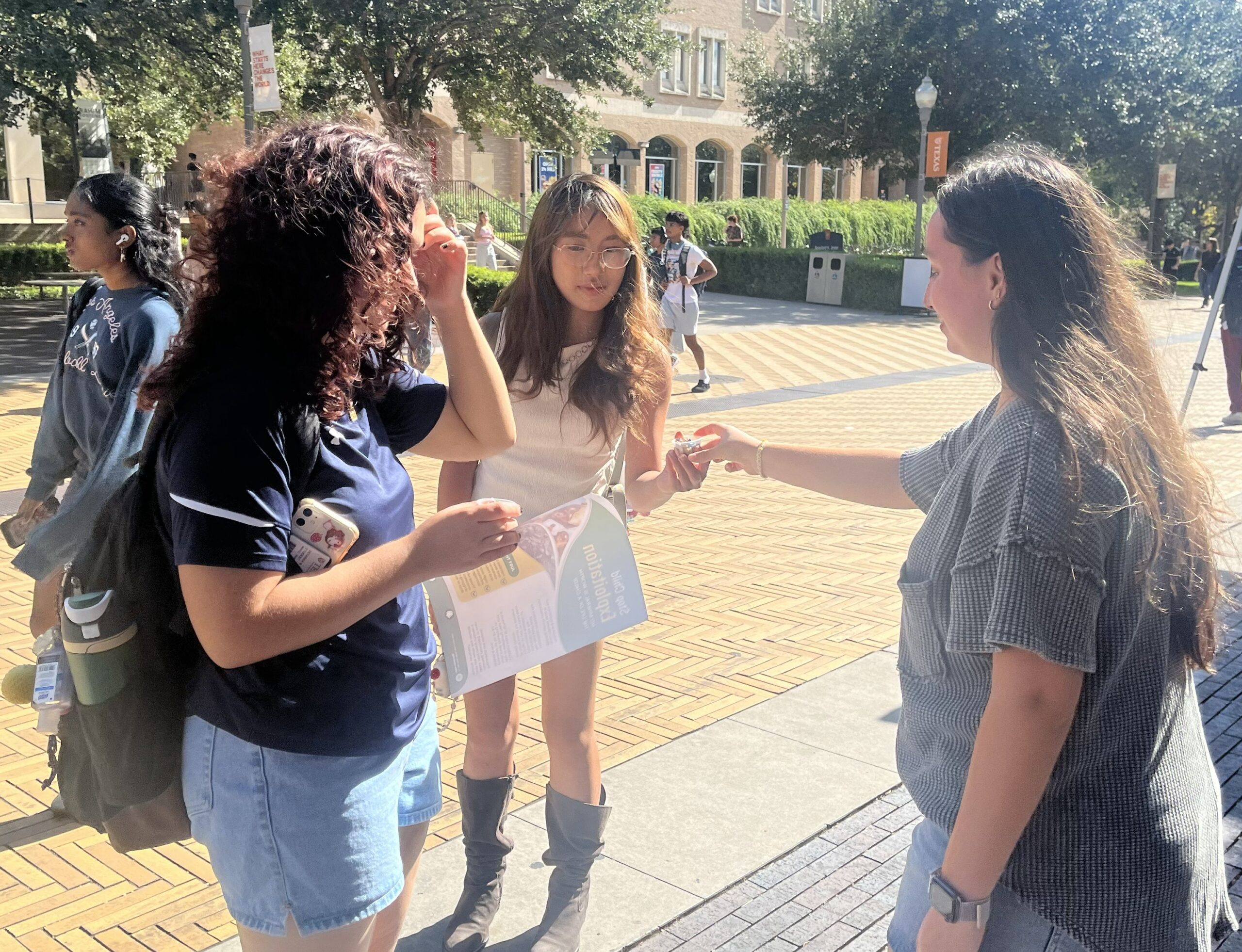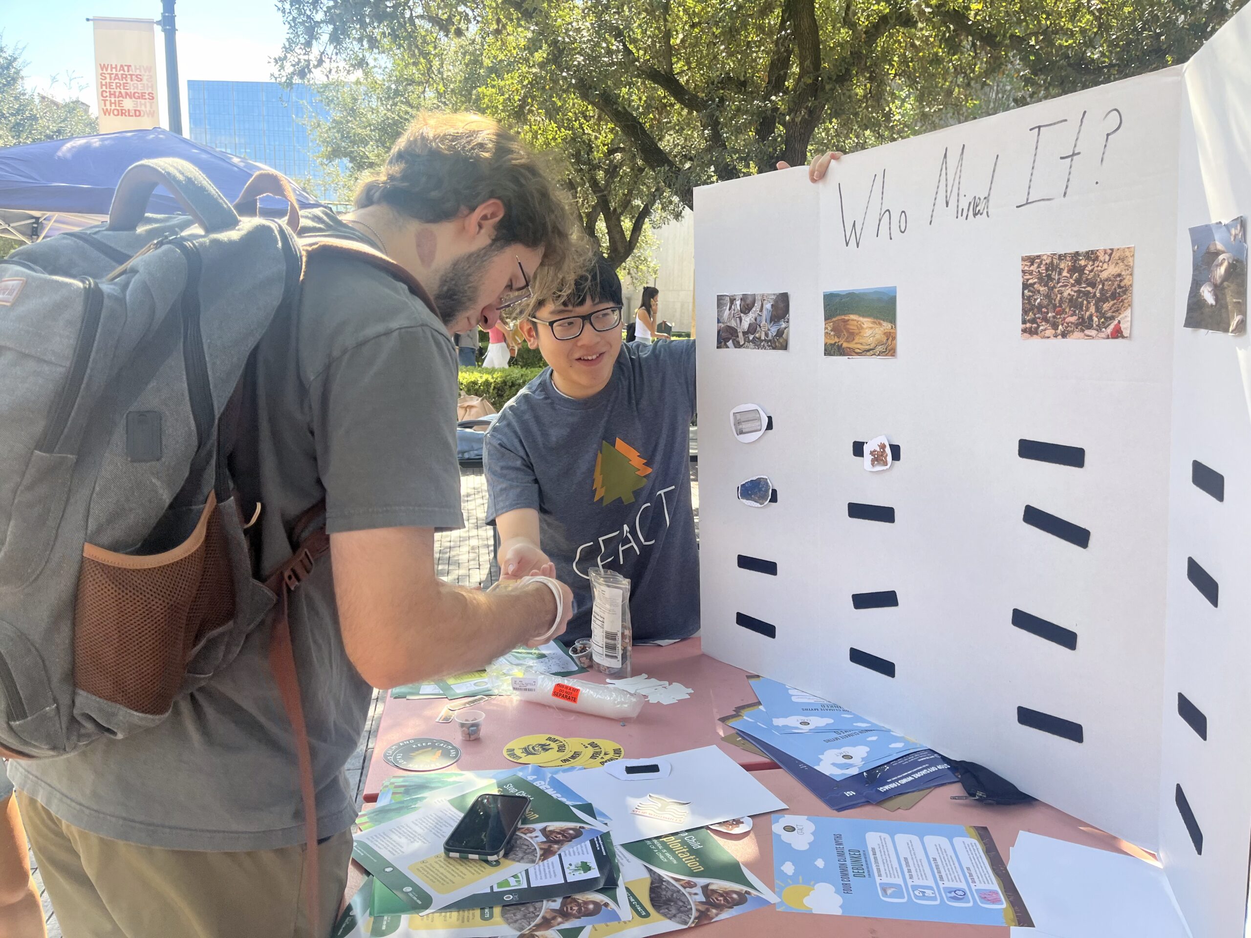 Positioned just off a heavily trafficked sidewalk, Thien’s table, covered in flyers and stickers, quickly became one of the most engaging displays on campus that afternoon. Dozens of students stopped by—many out of curiosity, others because the visuals spoke for themselves. Spread across his posterboard were striking images of open-pit strip mines, toxic waste runoff, and most sobering of all, photographs of slave and child laborers working in unsafe and inhumane conditions. These were not the glossy brochure images of “clean energy” students are accustomed to. They were the real-world costs. To sweeten the interaction, Thien offered chocolate candy that looked like rocks to participants, a clever and lighthearted way to get passersby engaged before diving into the heavier subject matter.