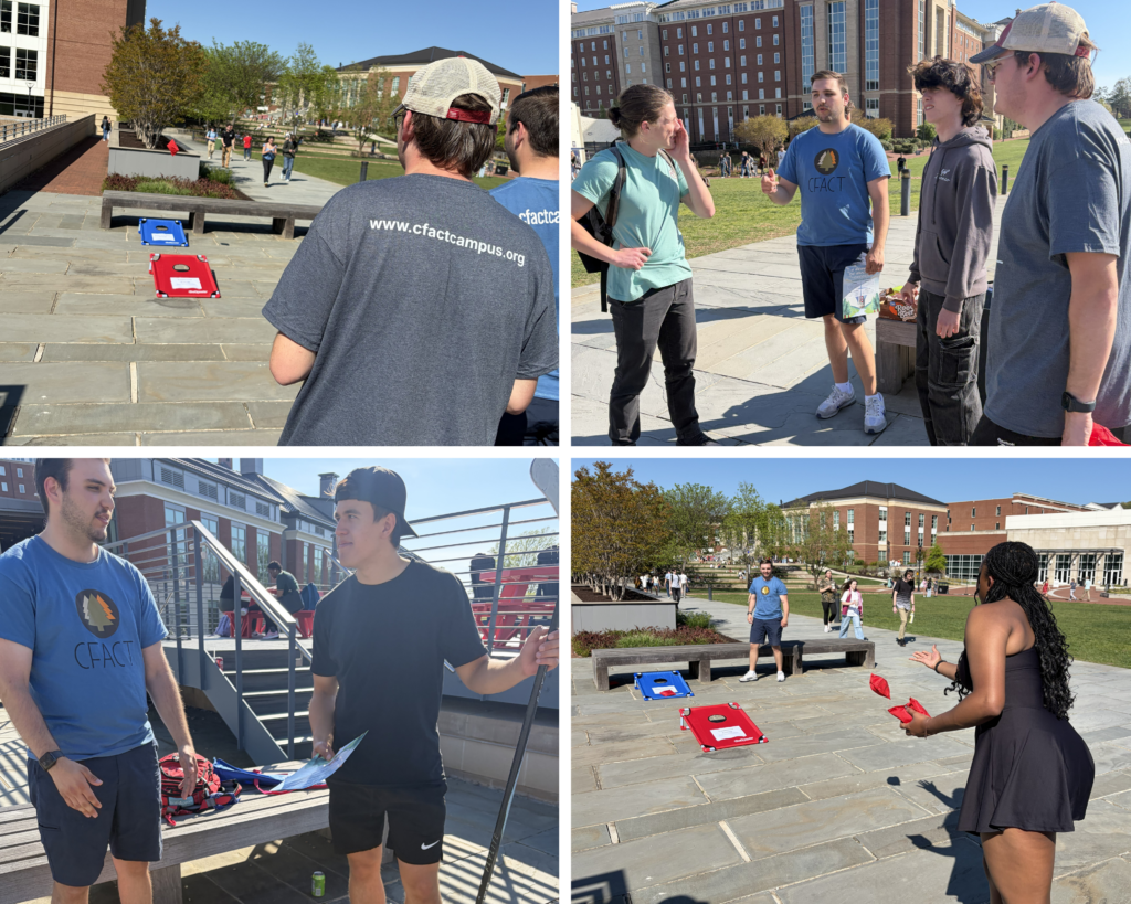 On April 10th, campus representatives Silas Pearson and Colton Smith—joined by National Director Nate Myers fresh off CFACT’s ICCC16 conference in Washington, D.C.—hosted a dual event combining a nuclear soda giveaway with an interactive “Power the Grid” beanbag toss.